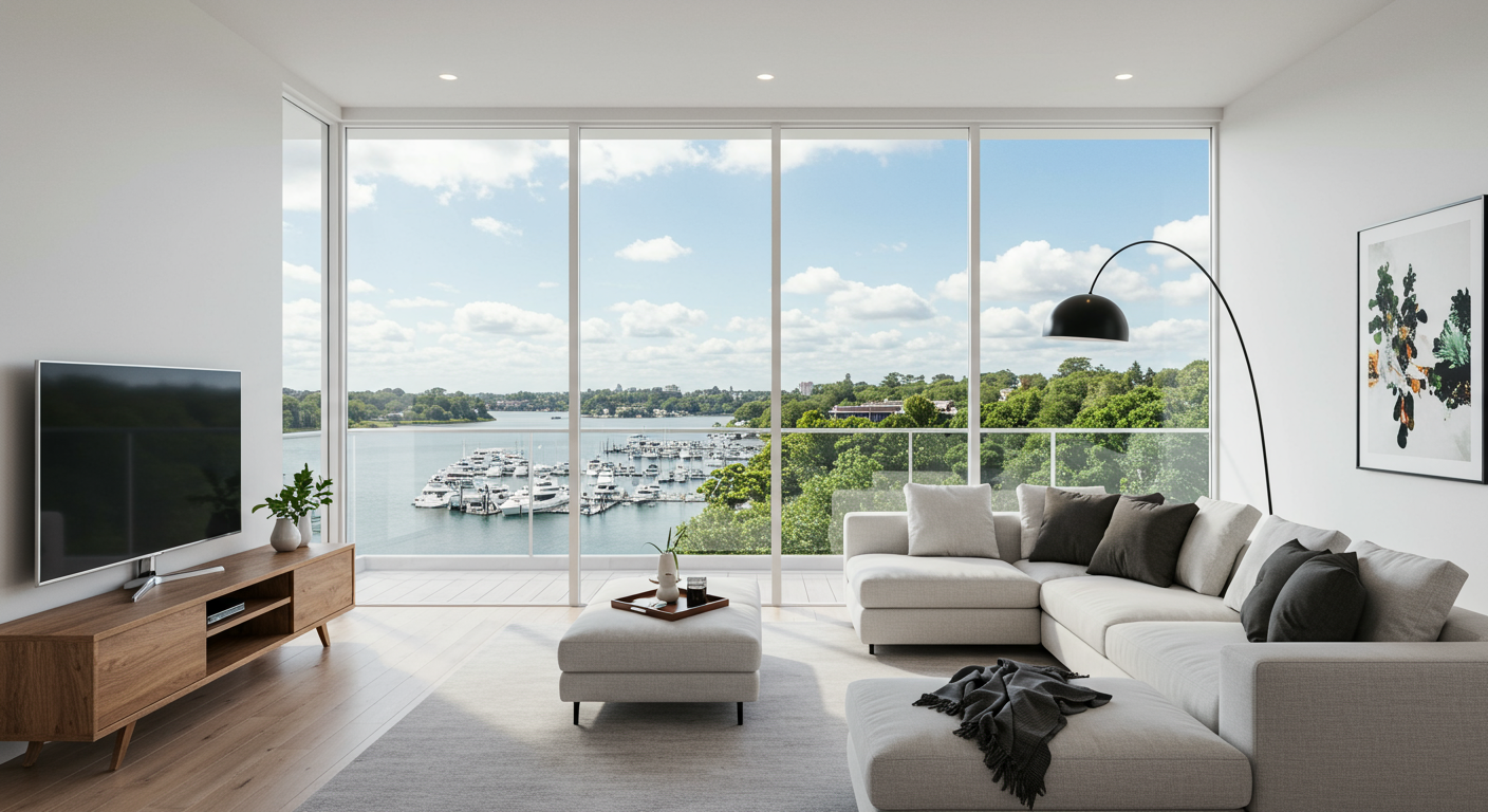 Spectacular panoramic lake views from this stunning updated residence.