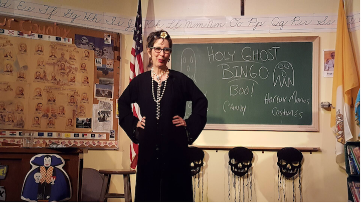 Test your knowledge of all things holy and haunted during Holy Ghost Bingo: God, Goblins & Games, an interactive comedy bingo show at the Greenhouse Theater where audience members get quizzed on Halloween and Catholic traditions alike. Who is the patron saint of werewolves? Which saint died and went to hell, then came back to life? Which two saints practiced black magic before switching to Catholicism? The premise is that Mrs. Mary Margaret O’Brien, a former nun, is here tonight to raise money while playing bingo and talking about Halloween traditions, scary movies, condemned board games, haunted churches, the best candy, and the worst costumes. It’s a crazy night of Halloween trivia, audience interaction, and the funniest costume contest you’ve ever seen.